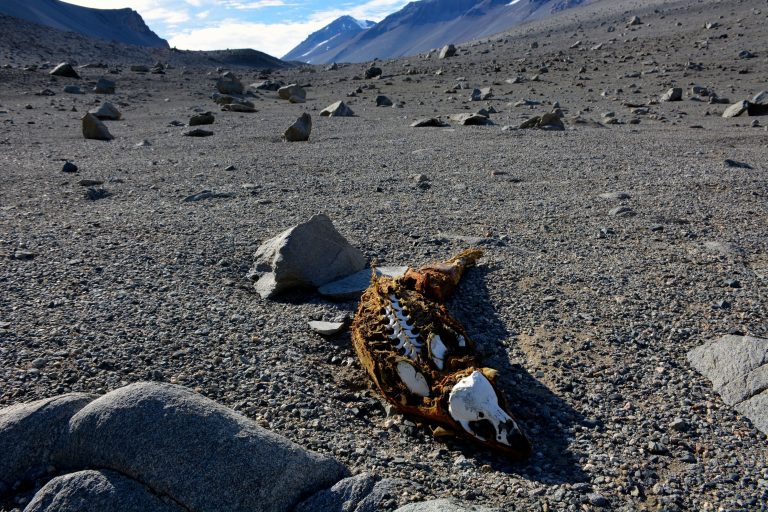 Another interesting thing at this site was the presence of a mummified seal. Seals sometimes enter the valleys by mistake, get lost, and end up walking up to 40 kilometres inland – an amazing feat for an animal that’s not very agile on land – before dying of thirst.