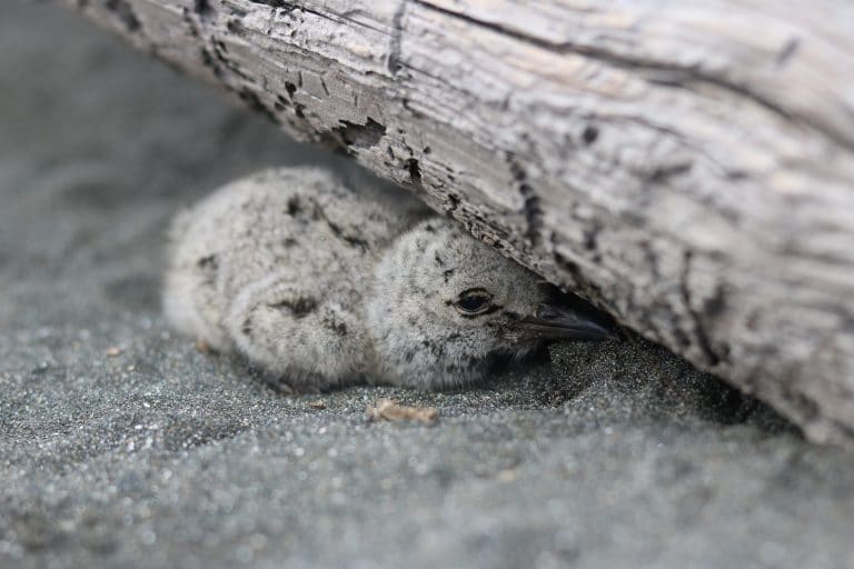 Unfortunately, at the start of this adventure, we were told we were not to interfere with natural events, which makes sense on paper but is very hard to implement in the field after you have become attached to and named all the individual birds. So, while we were tent-bound during the first storm of the year, in between wondering if we should evacuate like the rest of the tents at the campground and only occasionally going outside to put the tent pegs back in to stop it from collapsing, we sat worrying about our birds in the cold, heavy rain, king tide and blistering winds in what was supposed to be the height of summer. After the storm was over, we waded, knee deep through the dune road which had turned into an offshoot from the mighty Waikato due to the river swelling, to get back to our birds out on the spit. It was obvious that the spit had been completely inundated, likely from both sides. On approaching the nests, we got more and more nervous at how wet the sand still was and how close all the eggs were to hatching. To our surprise, the nests we checked along with eggs the contained, were bone dry. The parents had managed to protect their nests from mother nature and our first chicks hatched about a week later.